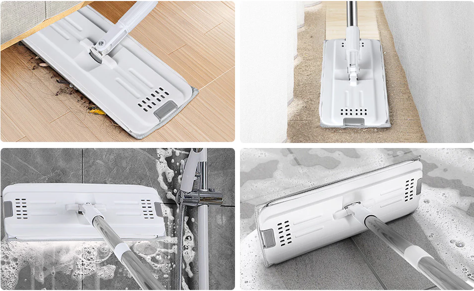 Grâce à son système 2 en 1 à double compartiment, le balai plat microfibre et son seau essoreur autonettoyant vous offrent un nettoyage rapide, sans effort et sans vous mouiller les mains. Avec ses serpillères lavables, sa tête rotative à 360° et son manche extra-long, il devient l’allié parfait pour une maison propre… sans mal de dos.